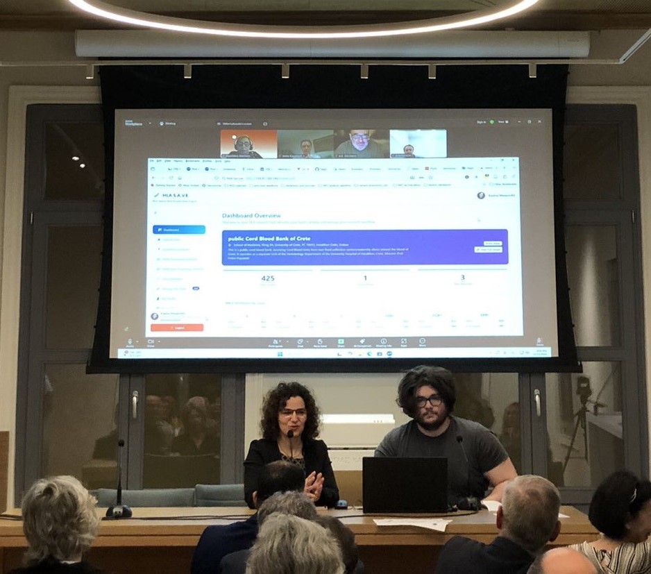 Κατά τη διάρκεια της εκδήλωσης παρουσιάστηκε από την Κοσμήτορα της Ιατρικής Σχολής Πανεπιστημίου Κρήτης, Καθηγήτρια Αιματολογίας Πανεπιστημίου Κρήτης και Διευθύντρια της Αιματολογικής Κλινικής ΠΑΓΝΗ, κυρία Ελένη Παπαδάκη, το έργο της ΔηΤΟΒ Κρήτης στον τομέα της Υγείας και της Έρευνας καθώς και οι προοπτικές περαιτέρω ανάπτυξης του έργου της. Παρουσιάστηκαν τα αποτελέσματα του ερευνητικού έργου που χρηματοδοτήθηκε από το Ελληνικό Κέντρο Έρευνας και Καινοτομίας,ΕΛΙΔΕΚ (αρ. πρότασης 4154) «Βελτιστοποίηση της αποδοτικότητας των Τραπεζών Ομφαλικού Αίματος και των Μητρώων Δοτών Μυελού βασισμένη στο HLA προφίλ- ECoBBMaDoR» από τη Δρ Ελένη Λατσούδη, συνεργαζόμενη Ερευνήτρια Βιοϊατρικής & Γενετικής, στο Εργαστήριο Πληροφοριακών Συστημάτων του Ινστιτούτου Πληροφορικής (ΙΠ) του ΙΤΕ. Τέλος, παρουσιάστηκε το καινοτόμο για την Ελλάδα ψηφιακό εργαλείο αναζήτησης και απεικόνισης HLA γονιδίων HLA-S.A.V.E, από τον κύριο Γεώργιο Ντόβα Μηχανικό Λογισμικού στο Ινστιτούτο Πληροφορικής του ΙΤΕ και τη Δρ Ειρήνη Μαυρουδή, συνεργαζόμενη Ερευνήτρια στο Εργαστήριο Μελέτης Αιμοποίησης, της Ιατρικής Σχολής, ΠΚ & τη ΔηΤΟΒ Κρήτης. Το ψηφιακό εργαλείο υλοποιήθηκε από την ομάδα του Εργαστηρίου Πληροφοριακών Συστημάτων του ΙΠ-ΙΤΕ (Δρ. Ειρήνη Φουντουλακη, Δρ. Ελένη Λατσούδη και κ. Γεώργιο Ντόβα) σε συνεργασία με την ομάδα της ΔΗΤΟΒ Κρήτης (Καθηγήτρια Ελένη Παπαδάκη, Δρ. Ειρήνη Μαυρουδή), με υποστήριξη από τον Ευρωπαϊκό Κόμβο Ψηφιακής Καινοτομίας για την Ευφυή Υγεία «smartHEALTH: European Digital Innovation Hub for Smart Health: Precision Medicine and Innovative E-health Services» και με την ευθύνη του Καθηγητή κύριου Δημήτριου Πλεξουσάκη, επικεφαλής του Εργαστηρίου Πληροφοριακών Συστημάτων, και του κύριου Δημήτριου Κατεχάκη, επικεφαλής του Κέντρου Εφαρμογών και Υπηρεσιών Ηλεκτρονικής Υγείας.