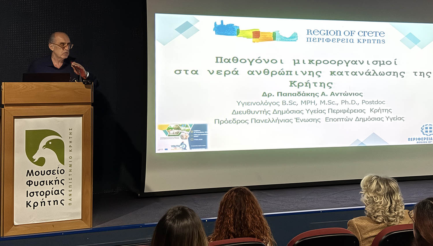 Στην ημερίδα, η οποία αποτελεί συν-διοργάνωση του Ιδρύματος Τεχνολογίας και Έρευνας (ΙΤΕ), του Πανεπιστημίου Κρήτης, των ΚΕΚ Τεχνικών Σχολών Επιμελητηρίου Ηρακλείου, του Μουσείου Φυσικής Ιστορίας, της Περιφέρειας Κρήτης και του ΕΟΔΥ, χαιρετισμό απηύθυνε η κα Ελένη Μαράκη-Μπελαδάκη, Εντεταλμένη Σύμβουλος Παιδείας και Δια Βίου Μάθησης της Περιφέρειας Κρήτης.