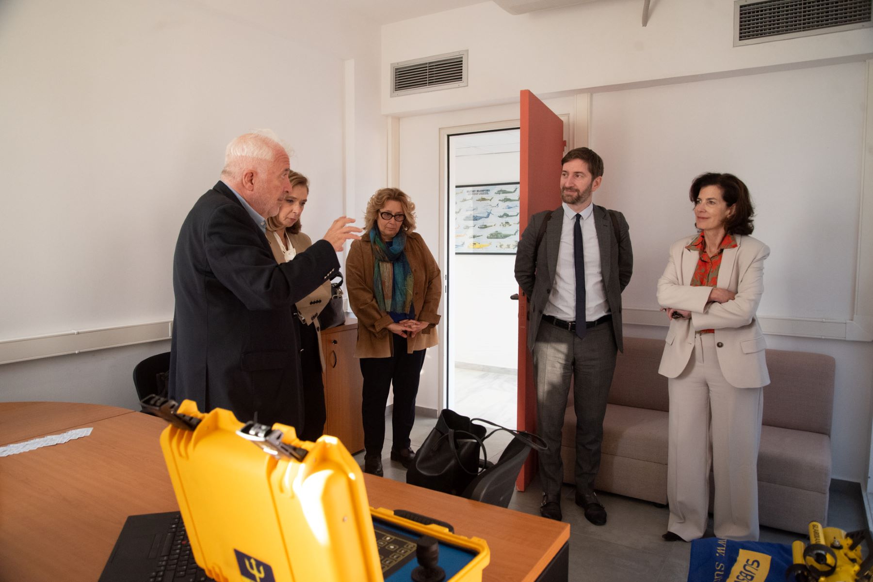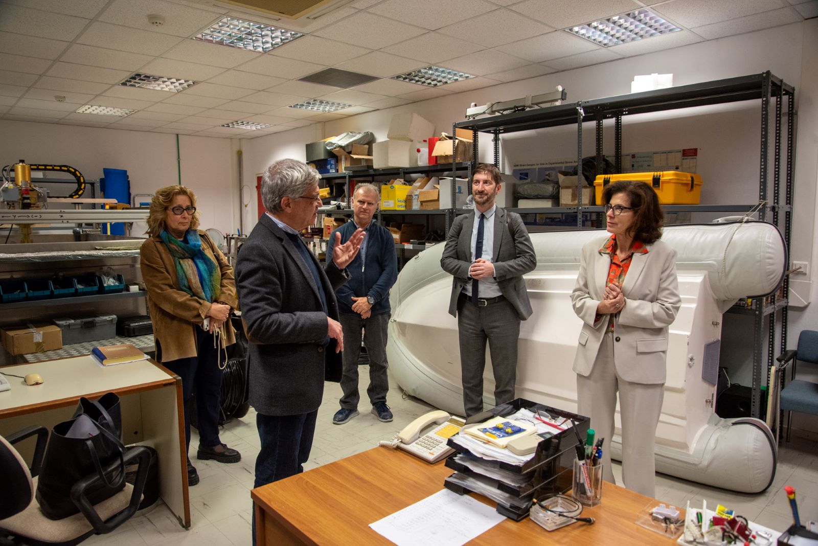 Ακολούθησε ξενάγηση σε ερευνητικά εργαστήρια του ΙΤΕ, όπου η Πρέσβειρα είχε την ευκαιρία να ενημερωθεί για δραστηριότητες και πρωτοποριακά προγράμματα που υλοποιούνται στο ΙΤΕ, στους τομείς της φωτονικής, της επεξεργασίας σήματος, της παράκτιας & θαλάσσιας έρευνας και των υποθαλάσσιων ακουστικών μετρήσεων, ενημερώθηκε για τις δραστηριότητες της ομάδας μικροηλεκτρονικής και συνομίλησε με ερευνητές του Ιδρύματος.