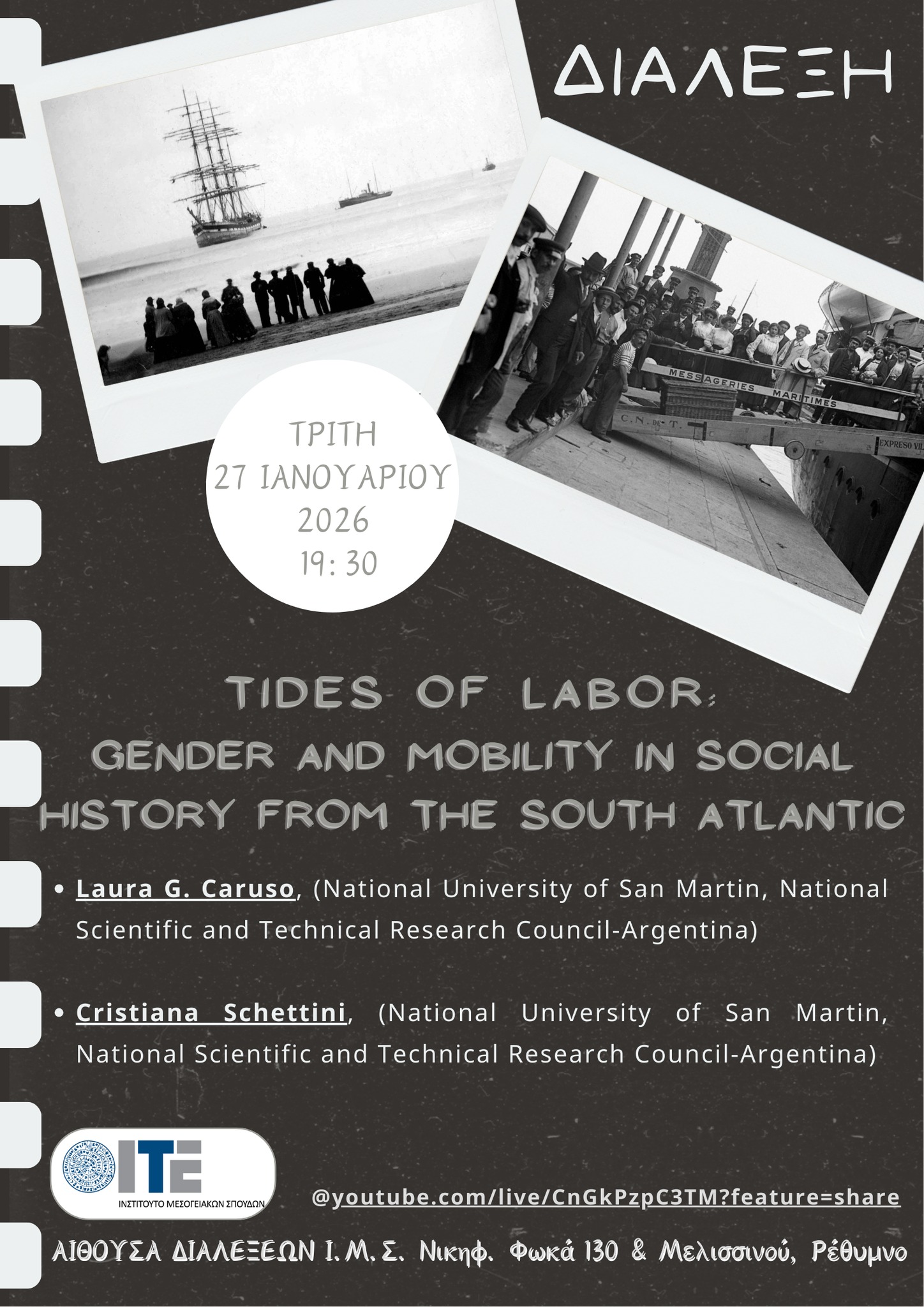 Διάλεξη με τίτλο «Ρεύματα εργασίας: φύλο και κινητικότητα στην κοινωνική ιστορία του Νότιου Ατλαντικού»