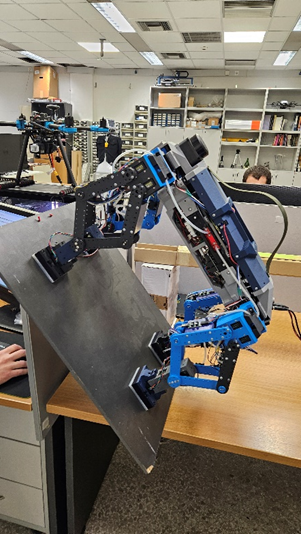 - The Computational Vision and Robotics Laboratory presented e-Cattie, a robotic system with walking and climbing capabilities. It has a unique, biologically inspired design as well as an integrated vacuum system and specially designed multi-functional suction cups, which allow it to adhere to any surface, regardless of the slope, even upside down. These capabilities make e-Cattie an ideal system for inspection, search and rescue and data collection missions in inaccessible areas.
